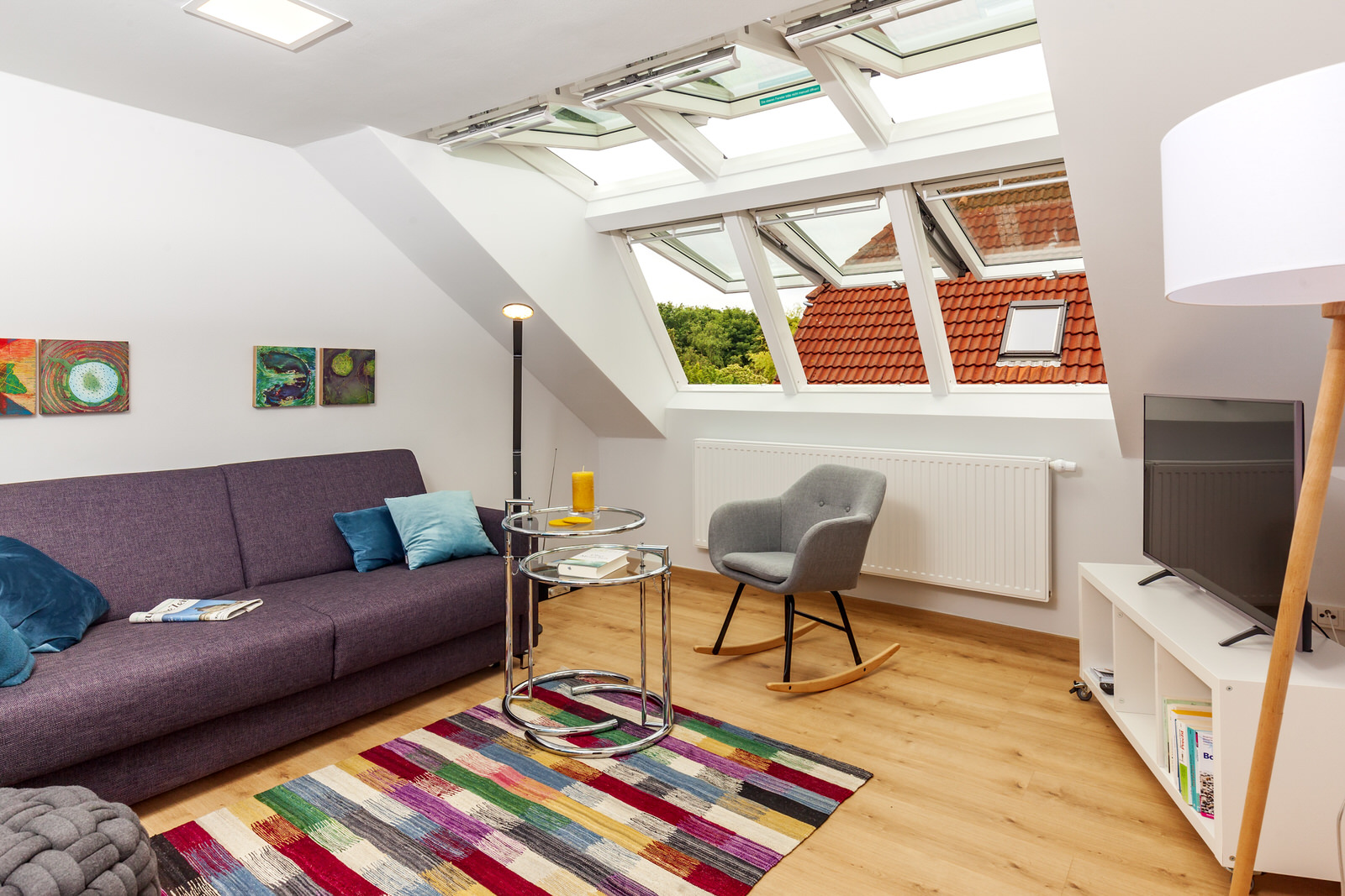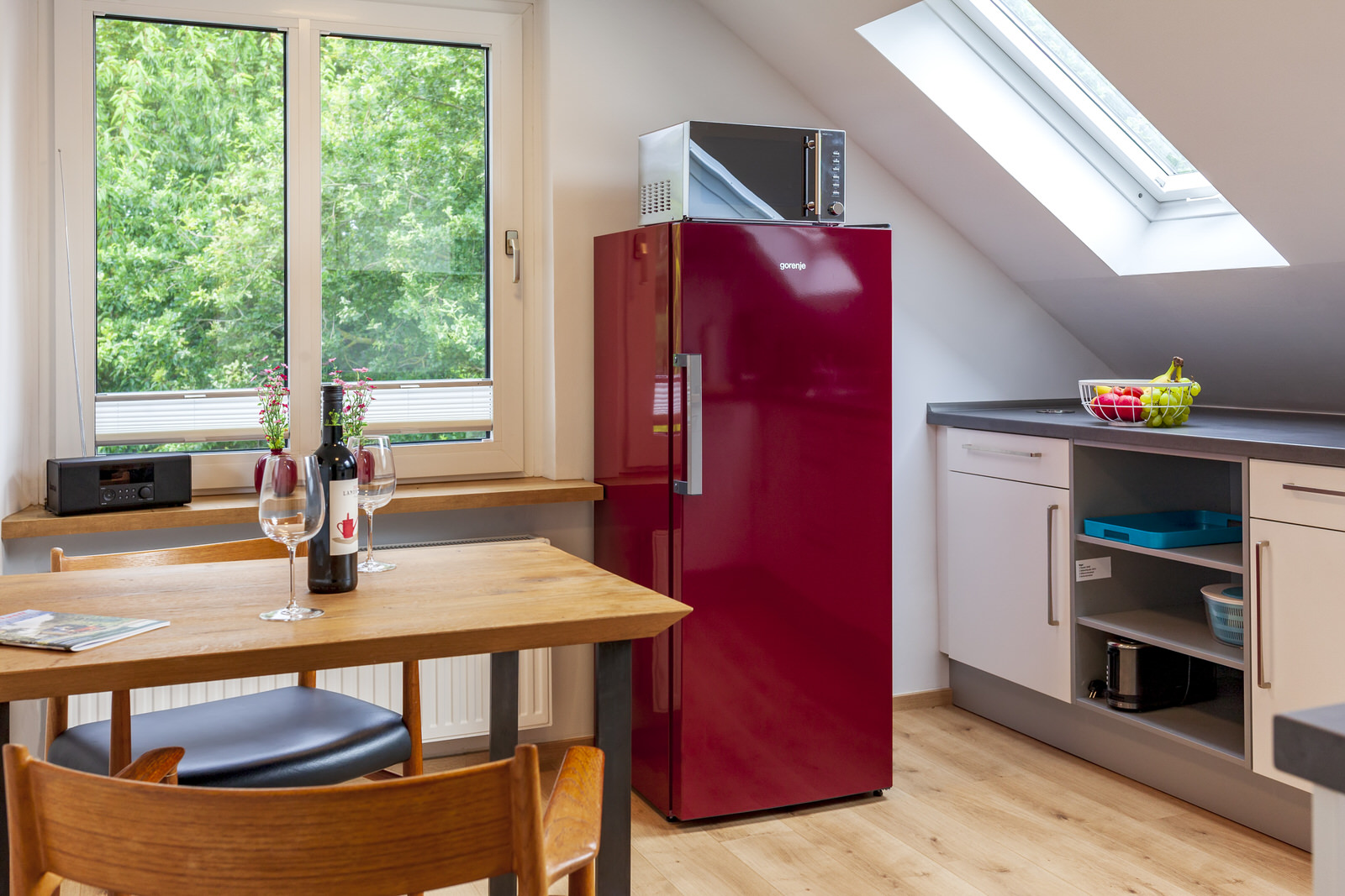 Die gemütliche 49 qm große Ferienwohnung im OG wurde wie das gesamte Haus 2020 und 2021 komplett kernsaniert. Wir haben sie bewusst individuell, stilvoll-wohnlich mit hohem Standard zum Wohlfühlen eingerichtet.